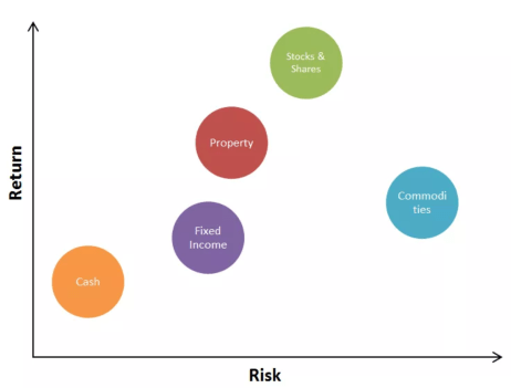 These assets all behave in different ways and so depending on your objectives you may want to invest in one over the other. Two simple and important characteristics to considers are risk and returns. As an investor you want to invest in an asset which gives you the highest possible return for the lowest amount of risk. Here is how these assets typically stack up.